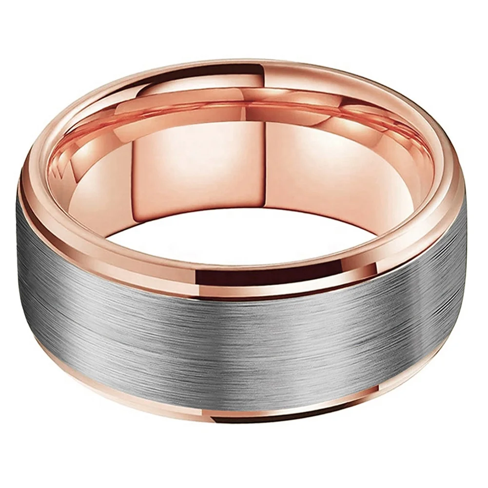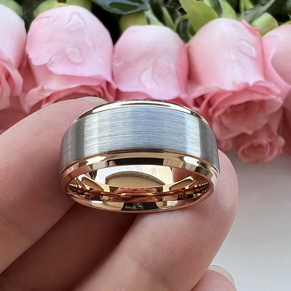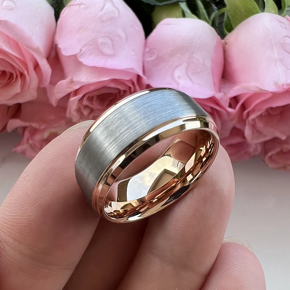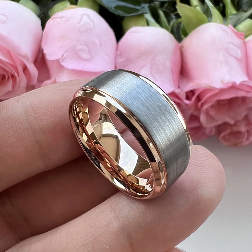Coolstyle Jewelry Stepped Beveled Edges Brushed Finish 10mm Rose Gold Tungsten Ring for Men Women Fashion Wedding Band